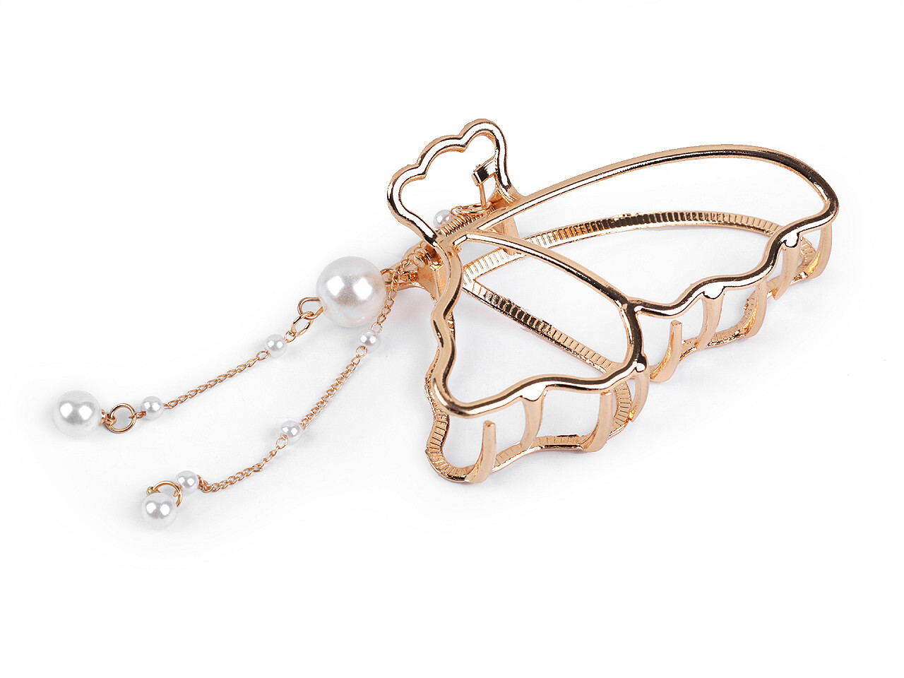 Skřipec do vlasů kovový s perlovým přívěskem - 1 ks - 4 zlatá motýl