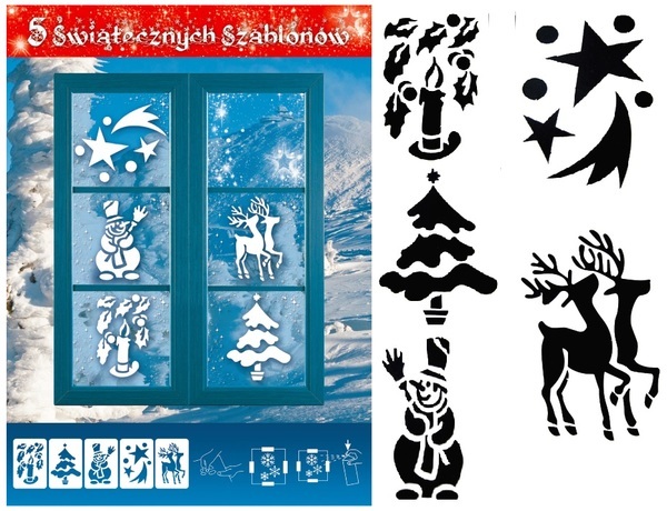 Papierowe szablony świąteczne do dekoracji okien. Zestaw 5 wzorów. Sposób pakowania 20/200 przeczytaj całość