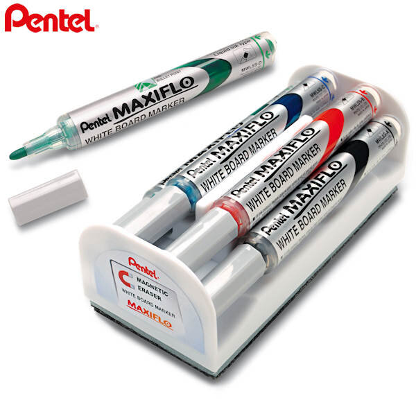 Marker suchościeralny 4-kol. + gąbka MWL5S-4N, Pentel