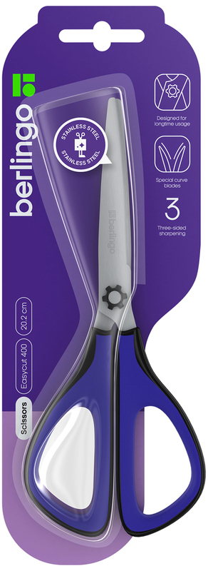 Nożyczk soft grip niebieskie Easycut 400, 20 cm, Berlingo