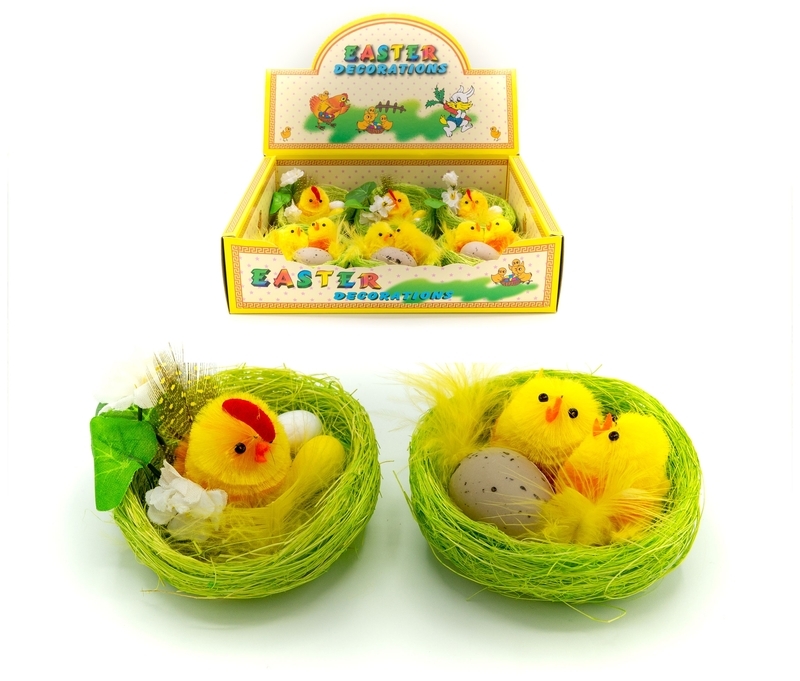 Kurczaki wielkanocne w gniazdkach 7 cm. . 1 box zawiera 6 szt., 2 wzory. sp. pakowania 1/60 op. przeczytaj całość