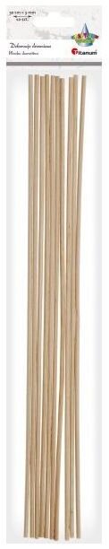 Drewniane patyczki do dekorowania, okrągłe, wykonane z naturalnego drewna, można je dowolnie zdobić: malować, oklejać, lakierować. Długość: 30 cm, średnica: 3 mm. 10 szt. przeczytaj całość