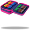 Piórnik potrójny z wyposażeniem Zawartość: - 18 kredek ołówkowych - 18 flamastrów - ołówek - 3 długopisy - ekierka - kątomierz - gumka do ścierania - temperówka - nożyczki Wymiary: 19,5 x 12,5 x 6,5 cm przeczytaj całość
