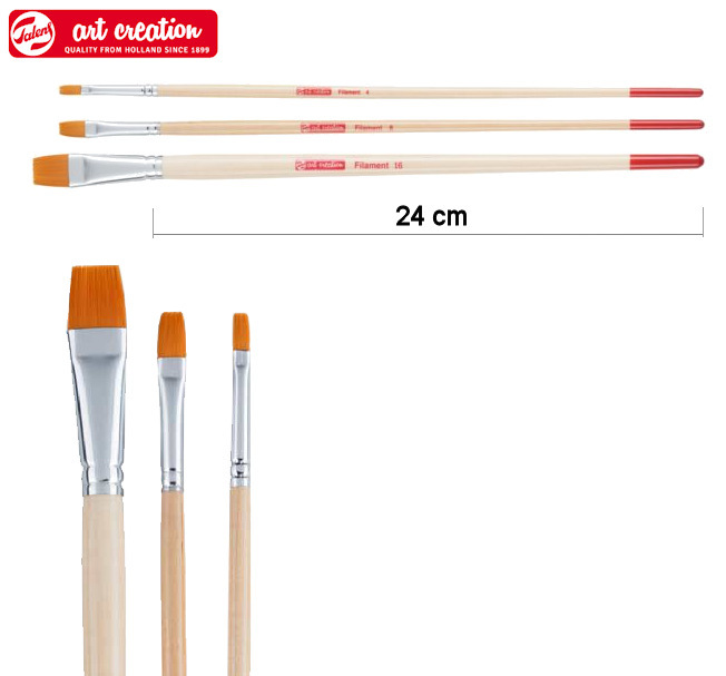 Kpl. pędzli płaskich z włosia syntetycznego Filament, na trzonku 24 cm.n-ry 4, 8 i 16 w torebce z zawieszką. przeczytaj całość