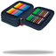 Piórnik potrójny z wyposażeniem Zawartość: - 18 kredek ołówkowych - 18 flamastrów - ołówek - 3 długopisy - ekierka - kątomierz - gumka do ścierania - temperówka - nożyczki Rozmiar: 19,5 x 12,5 x 6,5 cm przeczytaj całość