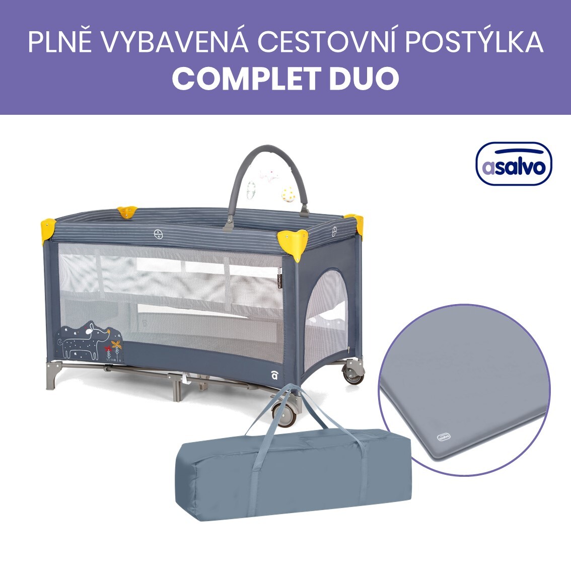 Asalvo COMPLET DUO cestovní postýlka s druhým dnem a hrazdičkou, puppy