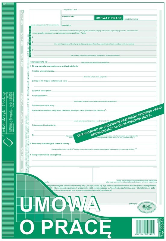 Druk Umowa o pracę A4 500-1K (nowa), MiP