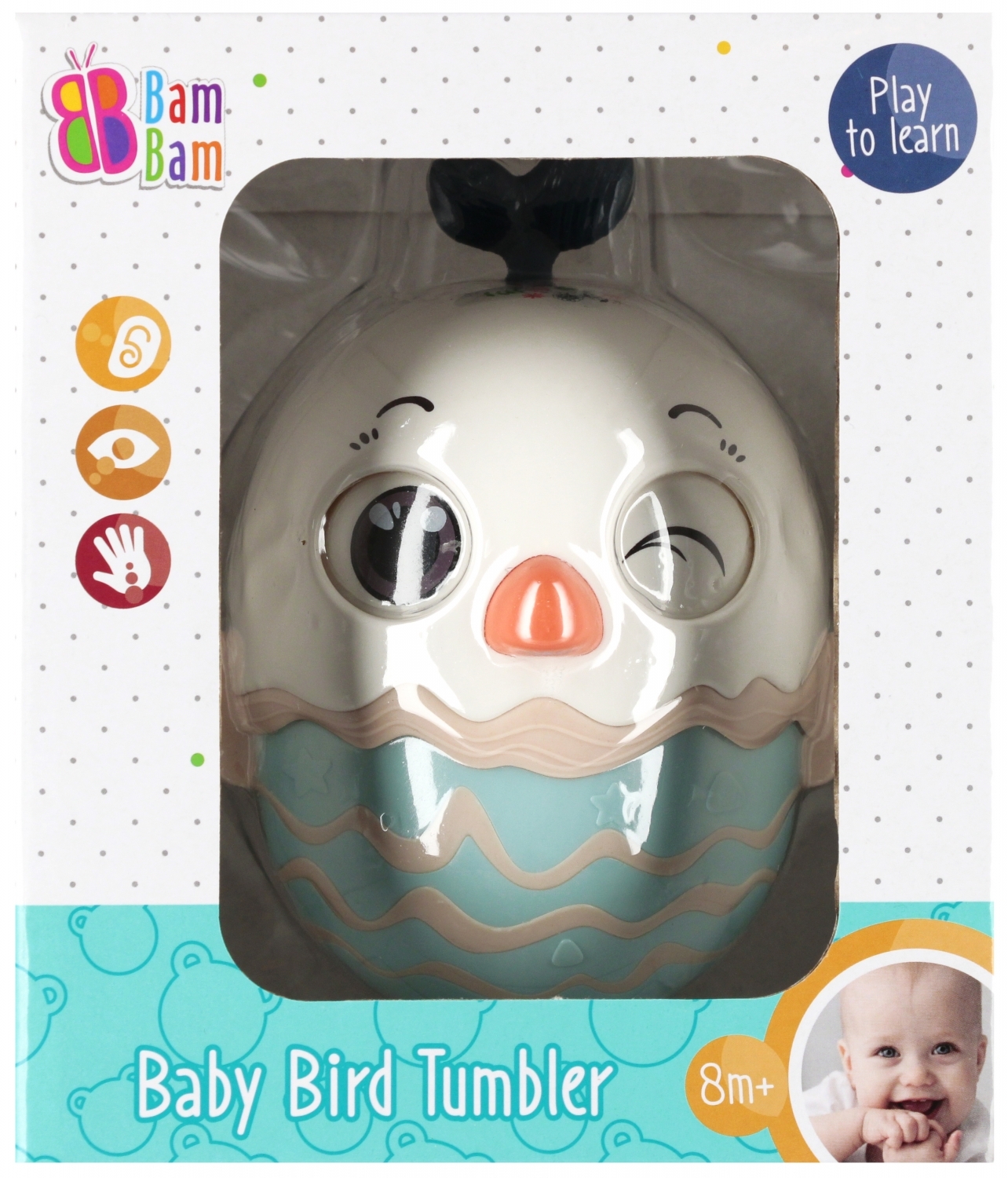 Wańka Wstańka Pisklak w postaci uroczego ptaszka to idealna zabawka dla najmłodszych od 6 m-ca, Zabawka, dzięki specjalnie zaprojektowanemu środkowi ciężkości zawsze wraca do pionu, niezależnie od tego, jak zostanie popchnięta. Wewnątrz zabawki znajduje się dzwoneczek, który wydaje radosny dźwięk podczas każdego ruchu, dostarczając maluchowi dodatkowej radości.