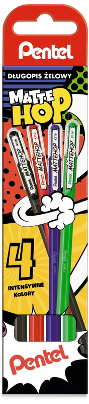 Długopisy żelowe Mattehop 1mm 4szt. ABCD, Pentel