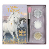Tetovací sada Miss Melody, Štětec, tři druhy třpytek, šablony