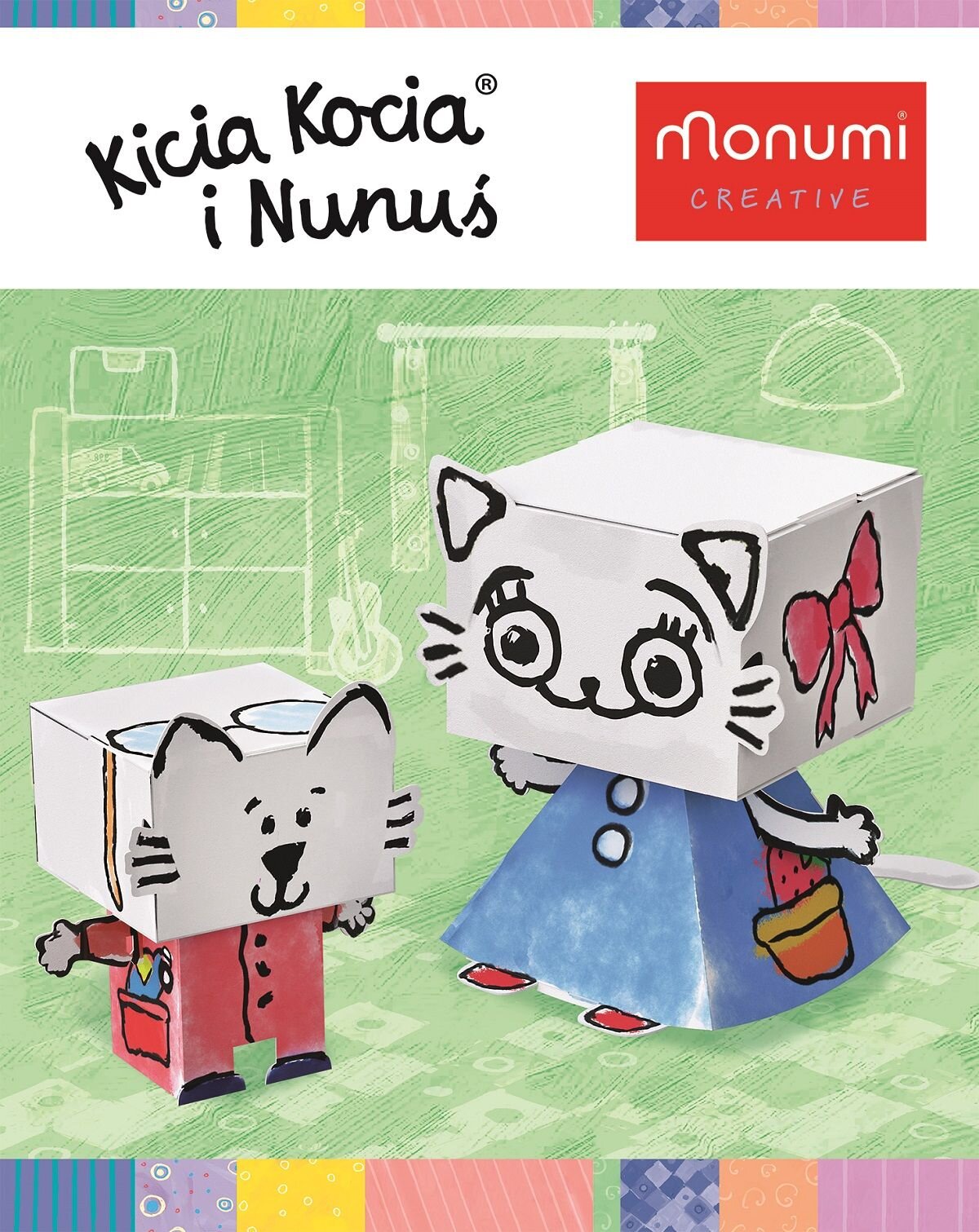 Kolorowana zawiera w 3D postać Kicia Koci i Nunusia,wykonana z tektury do kolorowania (kredki, flamastry, farby)wysokość do 20 cm (Kicia Kocia), Nunuś niższyzapakowane na płasko do złożenia przeczytaj całość