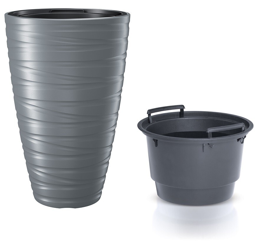 Kulatý květináč s vložkou MAZE šedý kámen