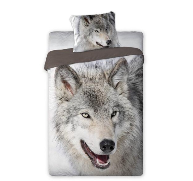 Bavlněné povlečení Wild Vlk 140x200 cm šedé