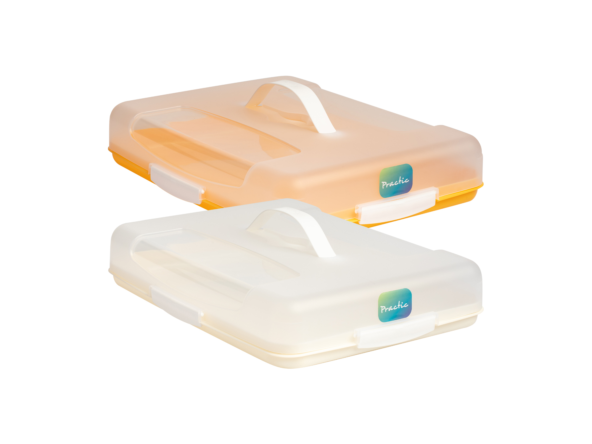 Plastowa taca z pokrywą nadaje się do transportu i przechowywania tortów i innych przysmaków. Po odchyleniu pokrywy można podawać przekąski. Pokrywa służy nie tylko do bezpiecznego przenoszenia, ale także do przechowywania i ochrony przed owadami w letnie dni.