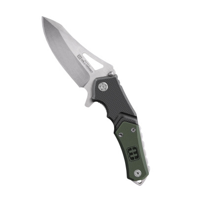 Nóż składany EDC Responder Quick Action Lansky przedstawia ręcznie otwierany nóż składany, który wyróżnia się kompaktowymi wymiarami, nowoczesnym designem oraz dopracowanymi detalami, które podkreślają jego ponadprzeciętną funkcjonalność i praktyczność. EDC, czyli Every Day Carry, to nóż stworzony do codziennego noszenia z naciskiem na możliwości taktyczne, które pozostają dyskretne. W porównaniu do swojego krewniaka - Responder X9 - jest bardziej kompaktowy i lżejszy, dlatego może być jeszcze lepszym wyborem do kieszeni. Ostry Clip-Point o gładkim ostrzu wykonano ze stali nierdzewnej 9Cr18MoV. Podobnie jak wersja Responder X9, ten model nie posiada sprężyny ani innego systemu wspomagającego, dzięki czemu spełnia przepisy ograniczające używanie noży z automatycznym otwieraniem. Responder Quick Action otwiera się ręcznie za pomocą specjalnego otworu w ostrzu, obustronnego wypustu do otwierania lub prostego flippera. Przed przypadkowym zamknięciem ostrza chroni blokada typu liner lock. Ergonomicznie ukształtowany chwyt z teksturą wykonano z nylonu balistycznego wzmocnionego włóknem szklanym. Zapewnia on wygodny i pewny chwyt bez ślizgania się noża w dłoni. Dla maksymalnego bezpieczeństwa przy pracy zastosowano kilka elementów ochronnych, w tym wspomniany flipper oraz specyficzne profilowanie dla palców. W sytuacji kryzysowej na końcu rękojeści znajduje się metalowy młoteczek do rozbijania szkła oraz praktyczny otwór na paracord. Główne cechy kompaktowy nóż składany EDC gładkie ostrze ostrze Clip-Point wykonane ze stali nierdzewnej 9Cr18MoV ostrze zabezpieczone blokadą typu liner lock ręczne otwieranie brak sprężyny ani innego systemu wspomagającego otwieranie za pomocą specjalnego otworu w ostrzu/flippera/obustronnego wypustu ergonomicznie ukształtowana rękojeść z teksturą bezpieczna manipulacja dzięki ogranicznikowi i profilowaniu dla palców legalny w wielu krajach na końcu rękojeści młoteczek do rozbijania szkła przesuwalny klips kieszonkowy (2 pozycje) Wymiary długość ostrza: 89 mm (3.5") całkowita długość w stanie otwartym: 178 mm (7") długość rękojeści: 89 mm (3.5") waga: 156 g