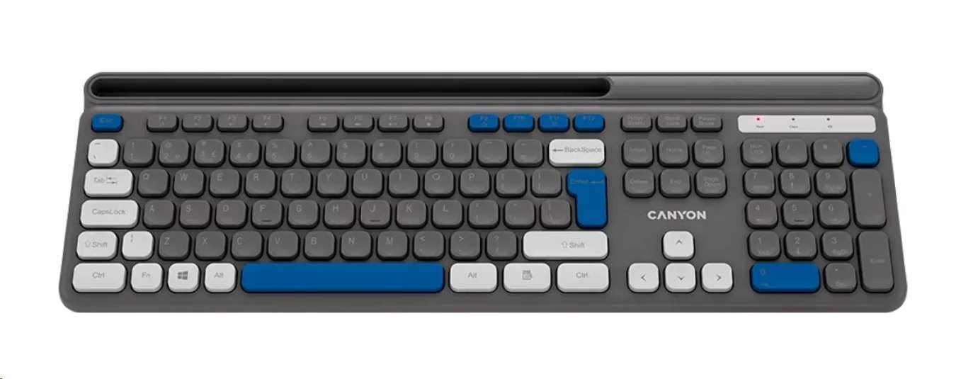 CANYON HKB-W03 bezdrátová CS klávesnice 2,4 Ghz, 105 kláves, 10 mil. stisků, šedá