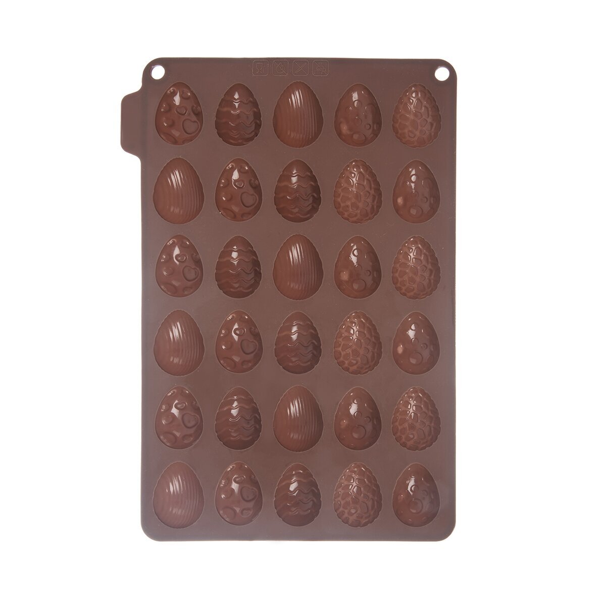 Silikonová forma Vám vytvoří velikonoční dobroty z čokolády ve tvaru vajíček. Můžete spojit 2 tvary k sobě vytvořit tak celé vajíčko buď celo čokoládové nebo plněné. Materiál: silikon. 30 forem. Snáší vysoké teploty. (od -40 °C do +220 °C), nepřejímá chutě ani vůně z použitých potravin. Vhodná do myčky na nádobí, do mrazničky i MVT. Rozměry: 24x15,7x1,2 cm, vajíčko 3,3x2,5 cm.