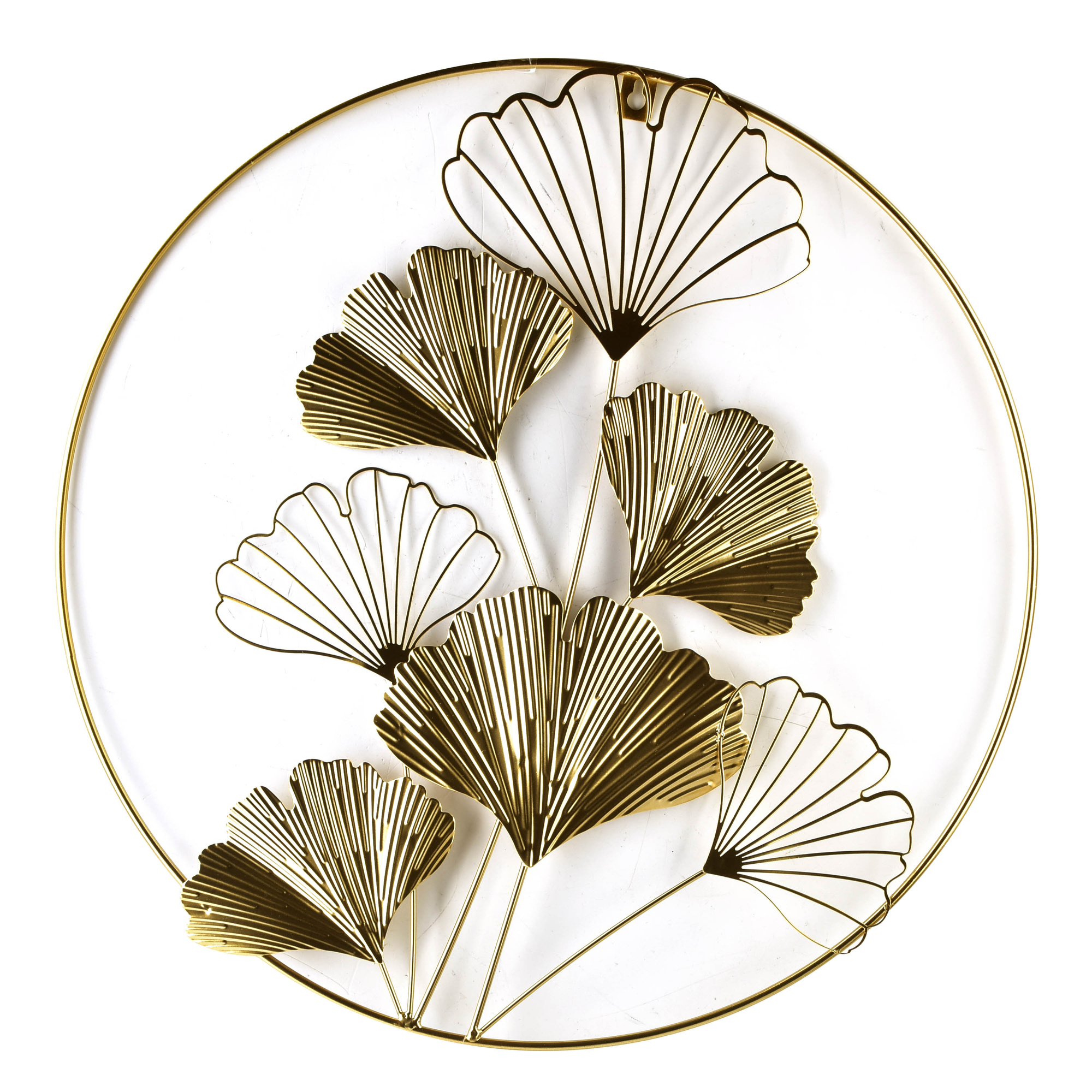 Metalowa ozodba ścienna z serii TALA GINGKO marki MONDEX since 1986. Złota okrągła dekoracja z liśćmi miłorzębu. wymiary: 45x1cm waga: 358g...
