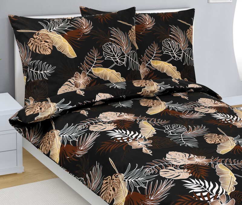 Povlečení bavlněné - Monstera tmavě hnědá - 140x200, 70x90 cm