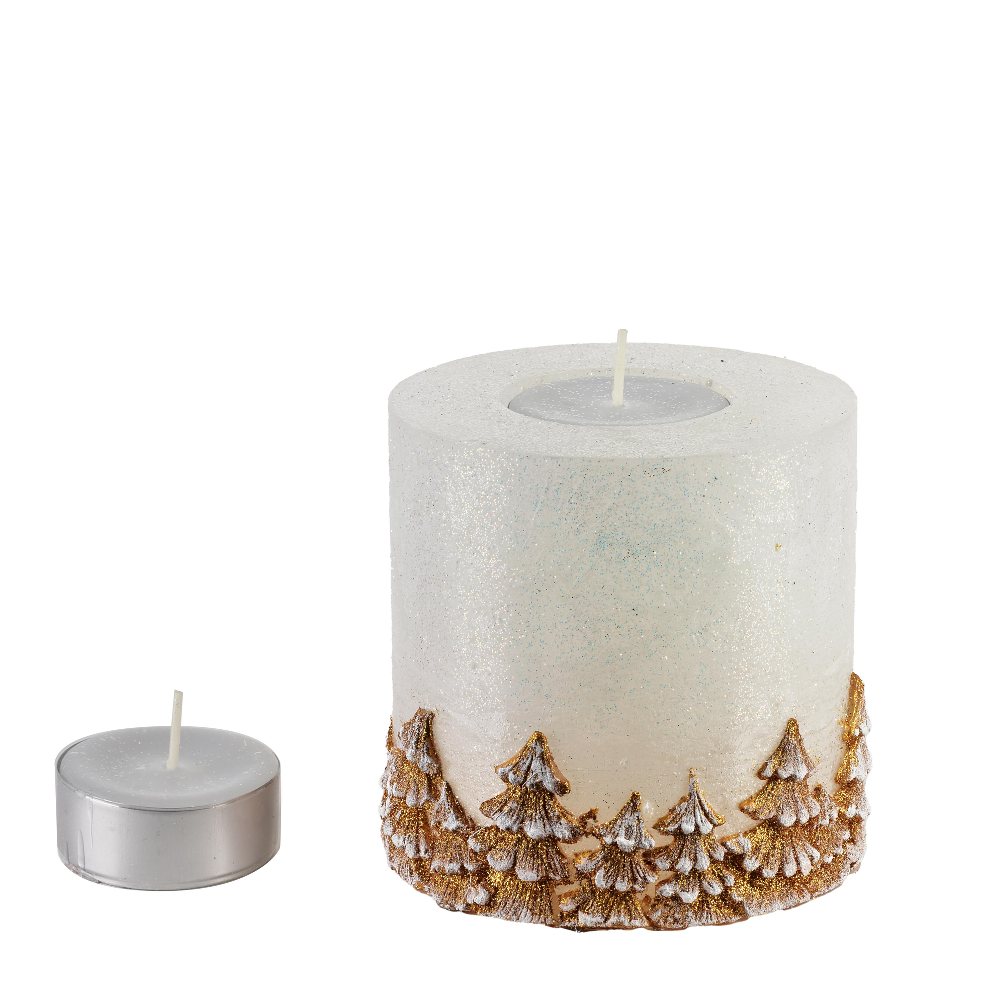 ŚWIECA LAMPION WALEC LAS BIAŁO ZŁOTY 120