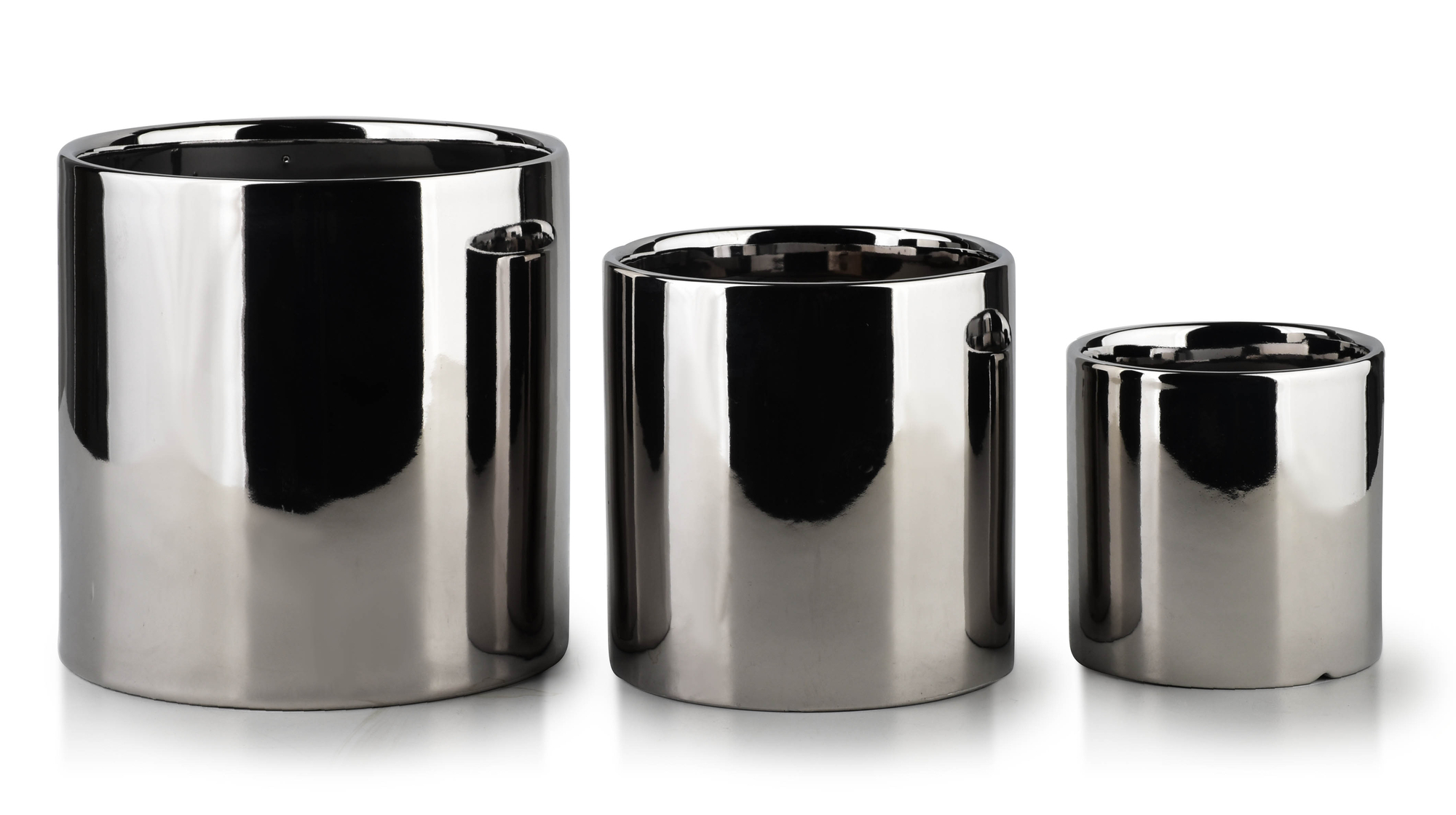 Komplet 3 ceramicznych osłonek z kolekcji NEVA SILVER. Komplet trzech osłonek reprezentujących markę MONDEX since 1986. Osłonki w średnim rozmiarze, wykonane z ceramiki w kolorze srebrnym. Pięknie będą się prezentować zarówno we wnętrzu, jak i na zewnątrz z zaznaczeniem...