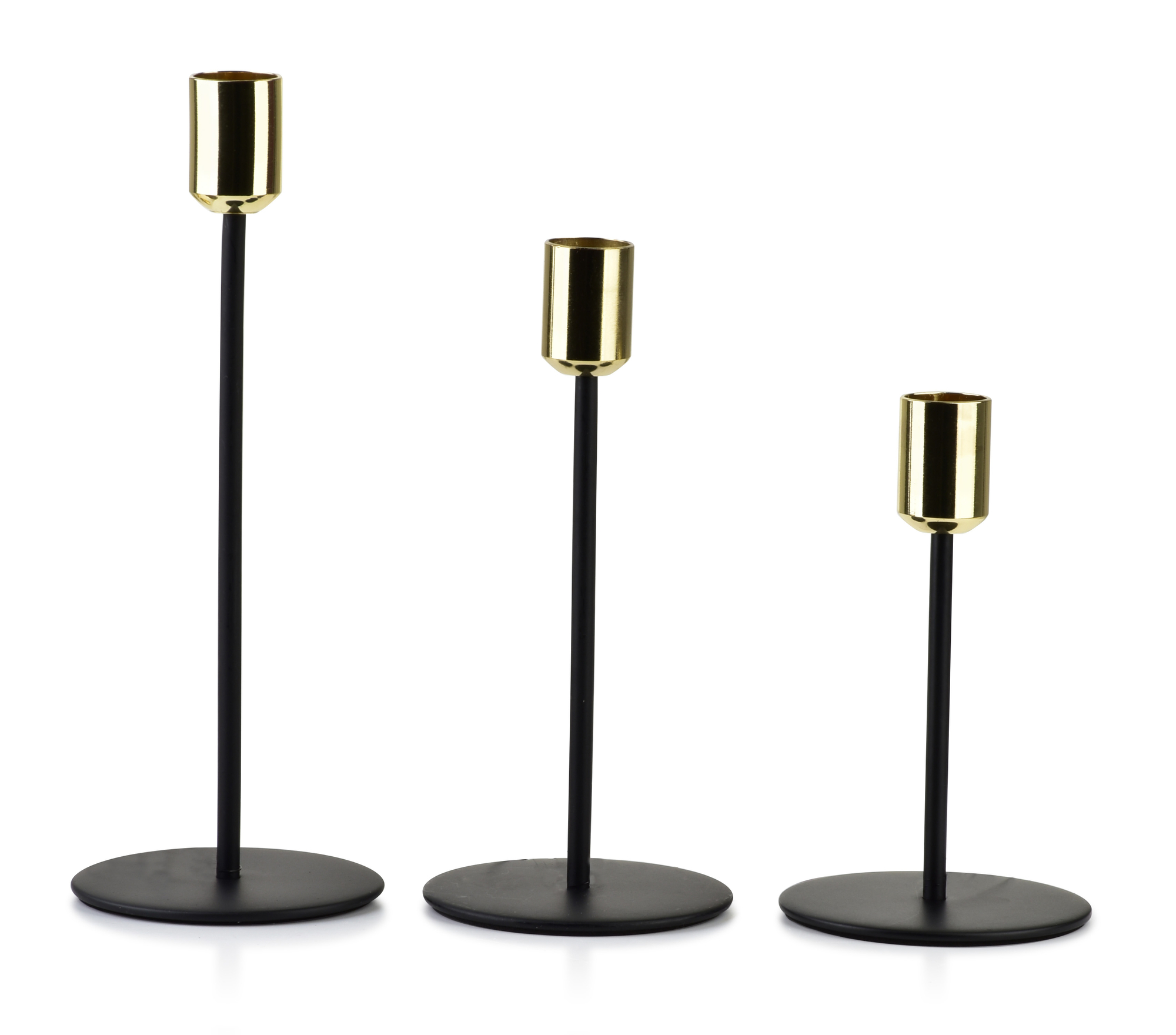 CEDRIC Komplet 3 świeczników czarno złot8xH14cm/8xH18cm/8xH22cm