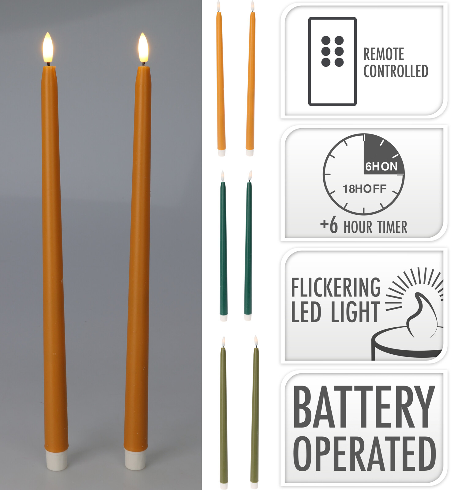 KOMPLET 2 ŚWIEC LED 38CM 3 KOLORY