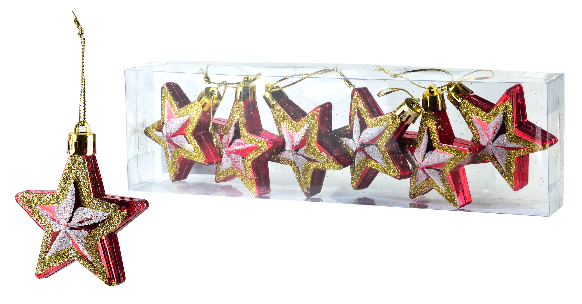 SANTA LILA Komplet 6 bombek 3x5,6x6,8gwiazdki