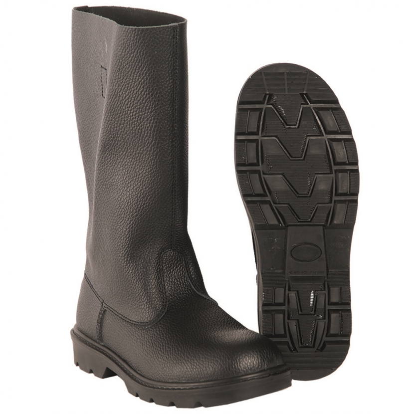 Typické armádní kožené boty, lidově řečené půllitry.Od německé značky Mil-Tec.Vlastnosti:• vyrobené z kvalitní kůže• vnitřní stélka EVA má vynikající izolační vlastnosti• stélka skvěle udrží nohu v suchu a tepleRozměry:výška: 32 cm bez podrážky (u velikosti 285)obvod: 50 cm v horní části boty, 41 cm v nejužší části boty (u velikosti 285)Materiál:svrchní: kůžepodrážka: polyuretan