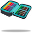 Piórnik potrójny z wyposażeniem Zawartość: - 18 kredek ołówkowych - 18 flamastrów - ołówek - 3 długopisy - ekierka - kątomierz - gumka do ścierania - temperówka - nożyczki Rozmiar: 19,5 x 12,5 x 6,5 cm przeczytaj całość