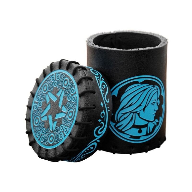 Černý kožený kelímek na kostky s modrým portrétem čarodějky Yennefer, svérázné přítelkyně zaklínače Geralta z Rivie. Šikovný doplněk pro hráče her na hrdiny a deskových či kostkových her.Materiál: kůže przeczytaj całość