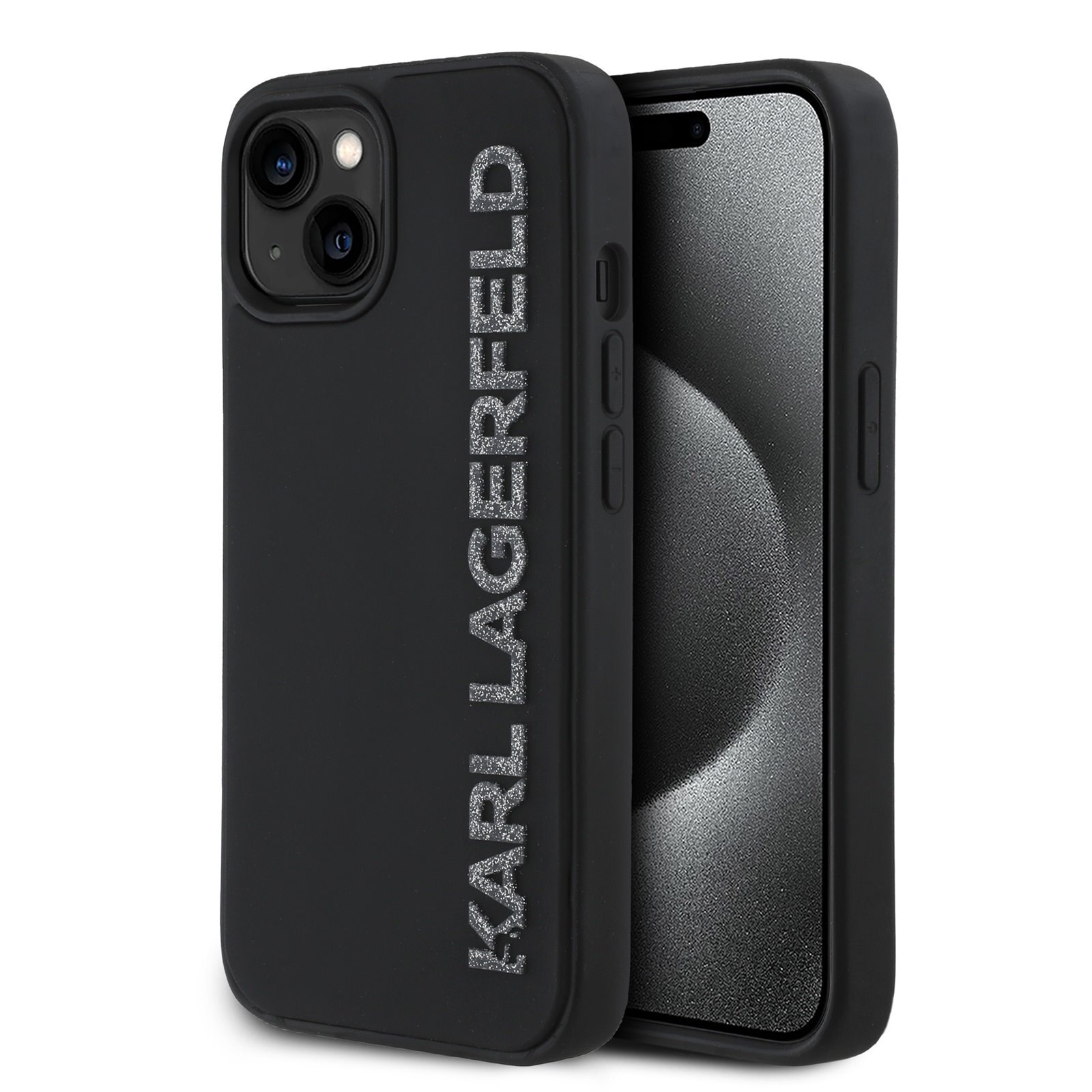 Karl Lagerfeld 3D Rubber Glitter Logo Zadní Kryt pro iPhone 13 Black