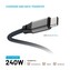 FIXED magnetický USB-C/USB-C kabel s opletením a Power Delivery, 1.2m, 240W, USB 2.0, šedý