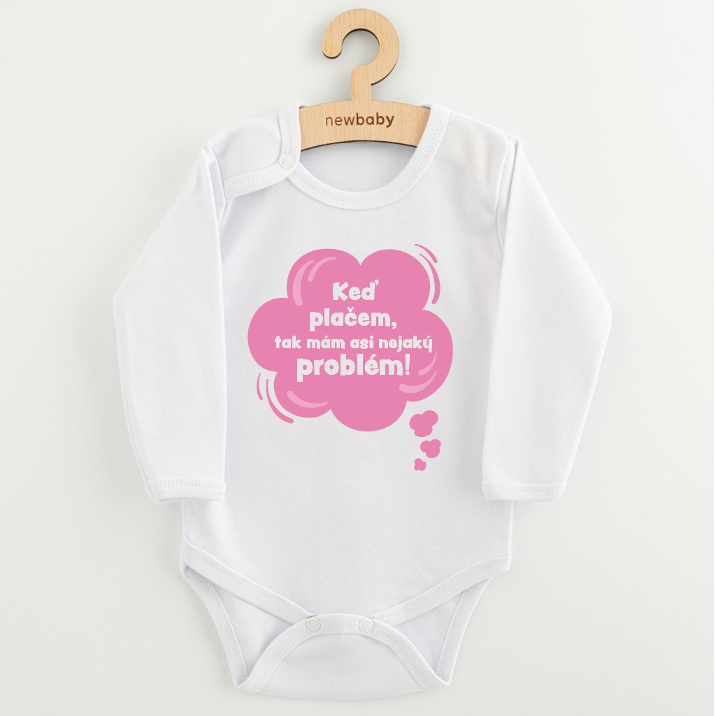 Dětské body s potiskem New Baby Keď plačem, tak mám asi nejaký problém! růžová - velikost 80 (9-12m)