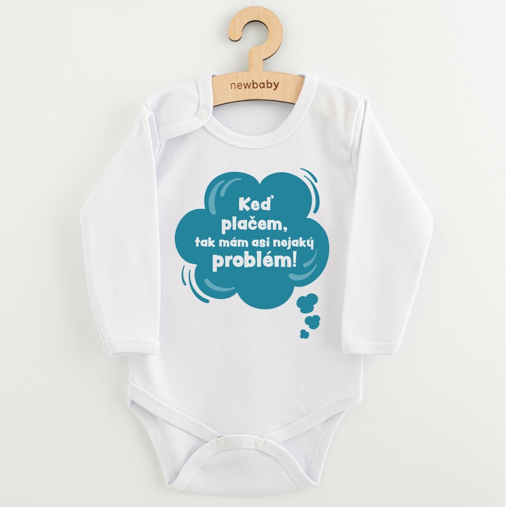 Dětské body s potiskem New Baby Keď plačem, tak mám asi nejaký problém! modrá - velikost 80 (9-12m)