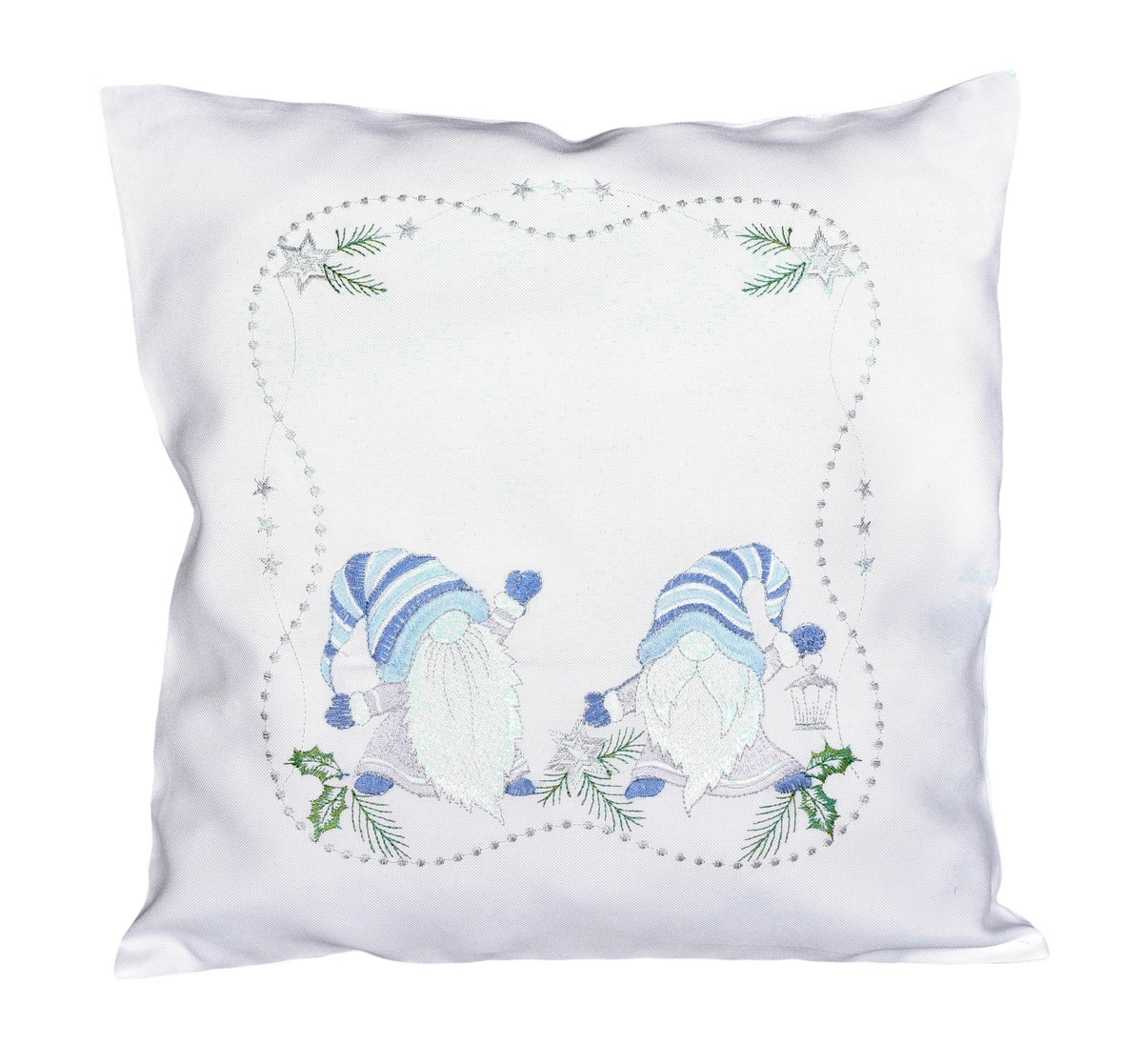 Návlek na polštář, Trpaslíci modrostříbrní, bílý, 40 x 40 cm
