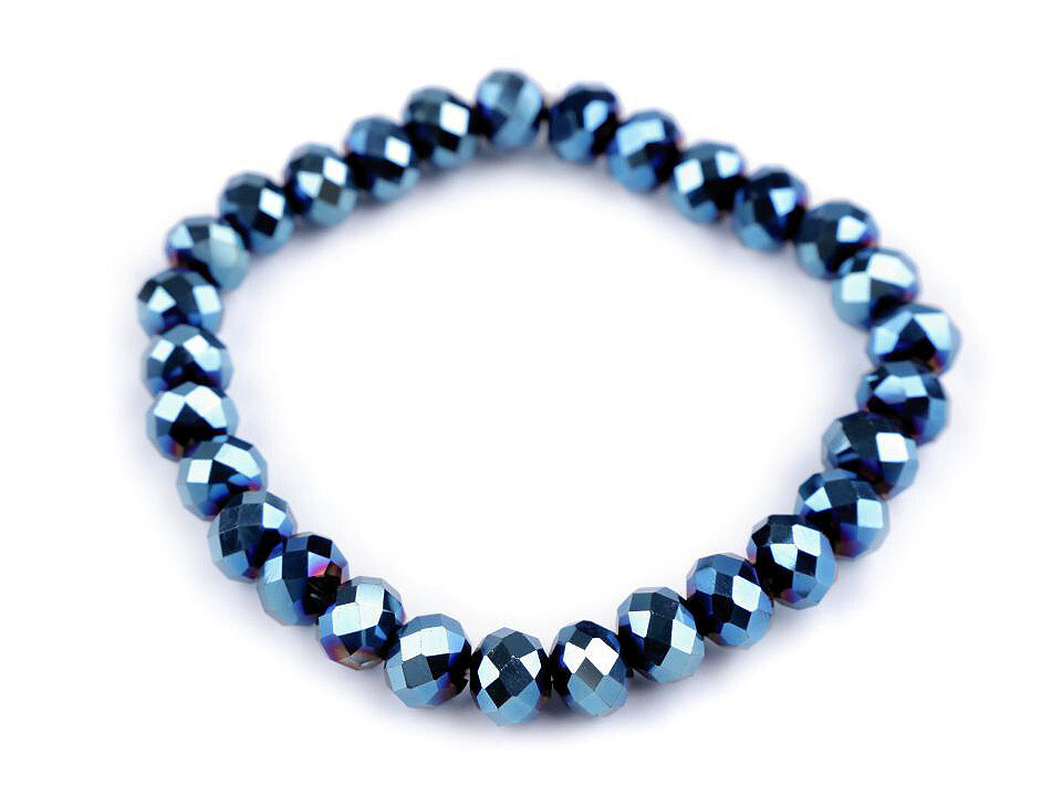 Náramek pružný z broušených korálků - 1 ks - 15 (40) modrá capri AB