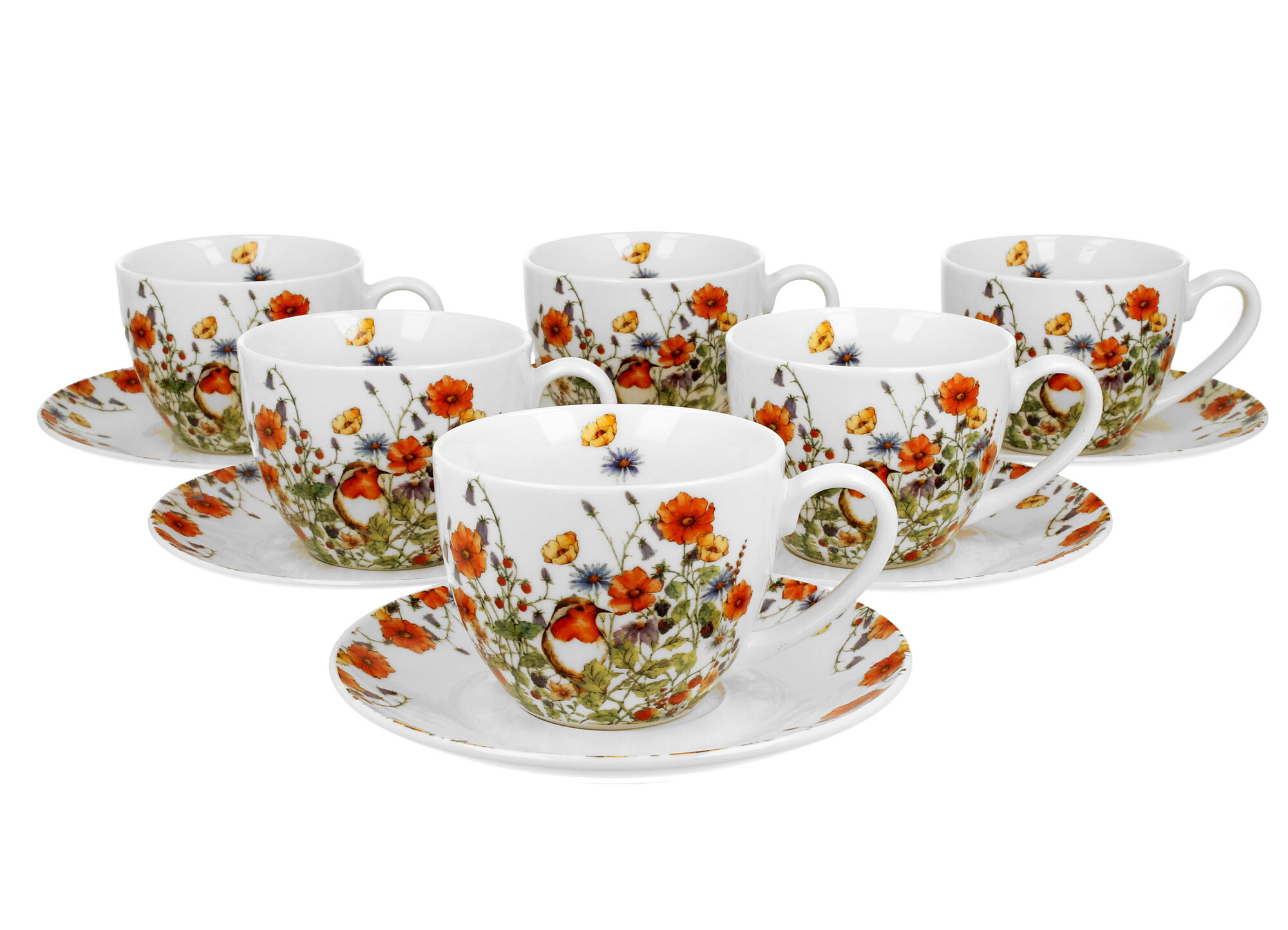 6 filiżanek ze spodkami WILD BIRD