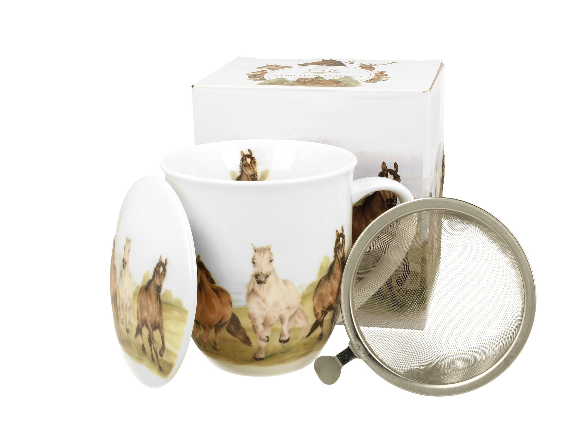 Kubek z zaparzaczem Świat Zwierząt KONIE W GALOPIE wchodzący w skład serii Animals, wykonany z porcelany New Bone China, charakteryzującej się naturalnym kremowo-białym kolorem z delikatnym połyskiem oraz wyjątkową wytrzymałością i trwałością, zachowując lekkość i finezję. Doskonały do...