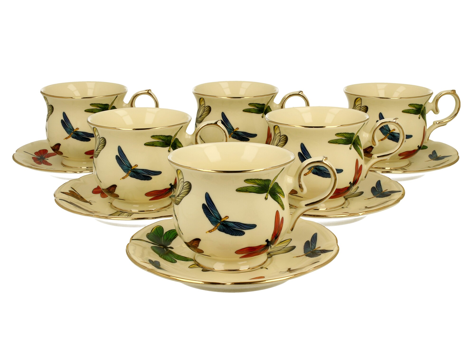 Komplet sześciu filiżanek w kształcie baryłki WAŻKI wchodzący w skład kolekcji ECRU. Wykonany z najwyższej jakości porcelany w kolorze ecru wykończonej złotymi zdobieniami oraz motywem kolorowych, eterycznych ważek. Soczyste kolory doskonale harmonizują ze śmietankową barwą porcelany. przeczytaj całość