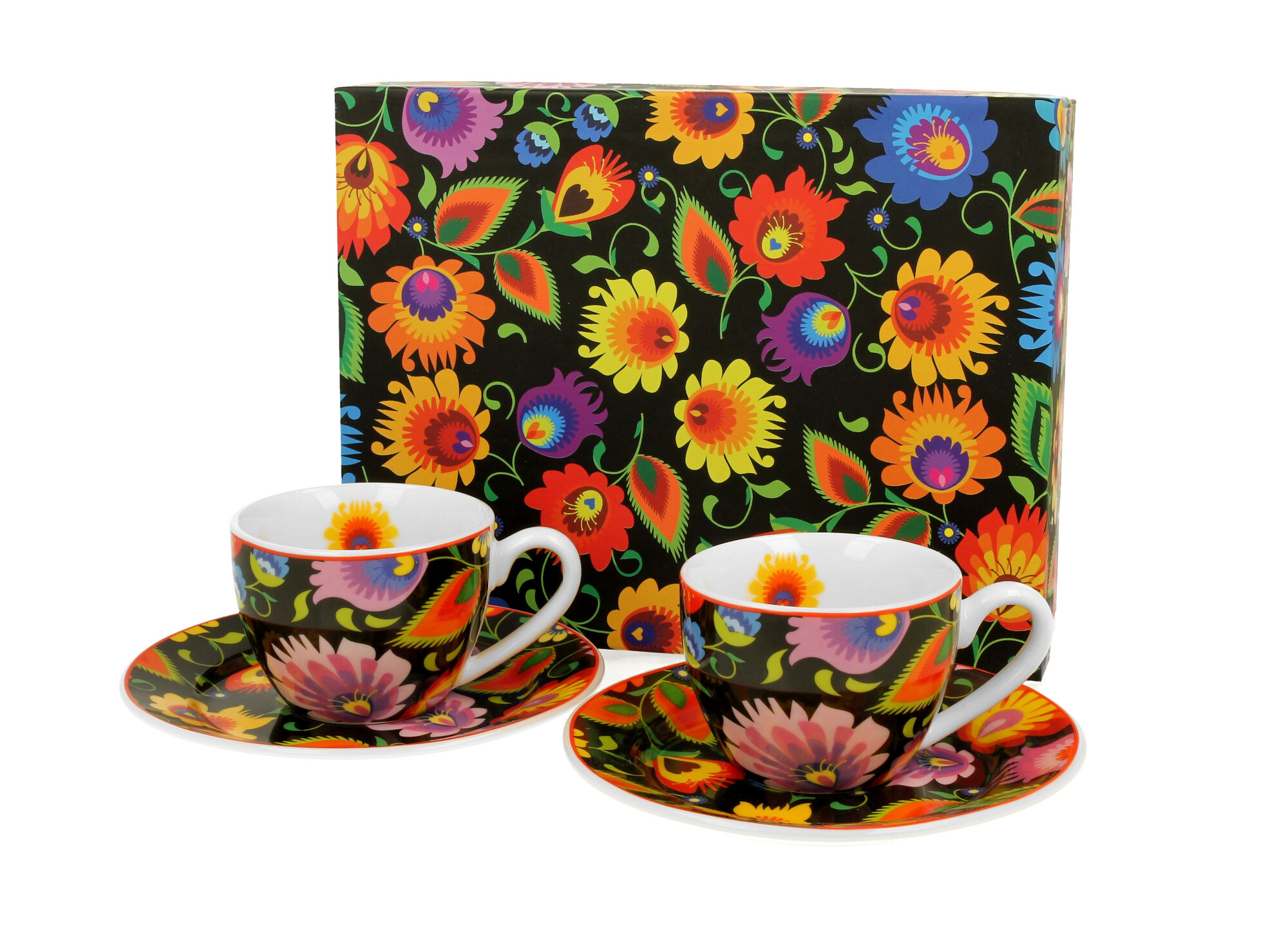 Komplet dwóch filiżanek espresso ze spodkiem ETNIC wchodzący w skład serii Etno, wykonany z porcelany New Bone China, charakteryzującej się elegancką i naturalną kremowo - białą barwą z delikatnym połyskiem, a także wyjątkową wytrzymałością.Linia charakteryzuje się białym kolorem wewnątrz oraz...