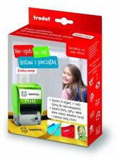Pieczątka Nie-zgub mi-się zestaw z tuszem do tkanin litery i cyfry w polskiej wersji 8911, Trodat