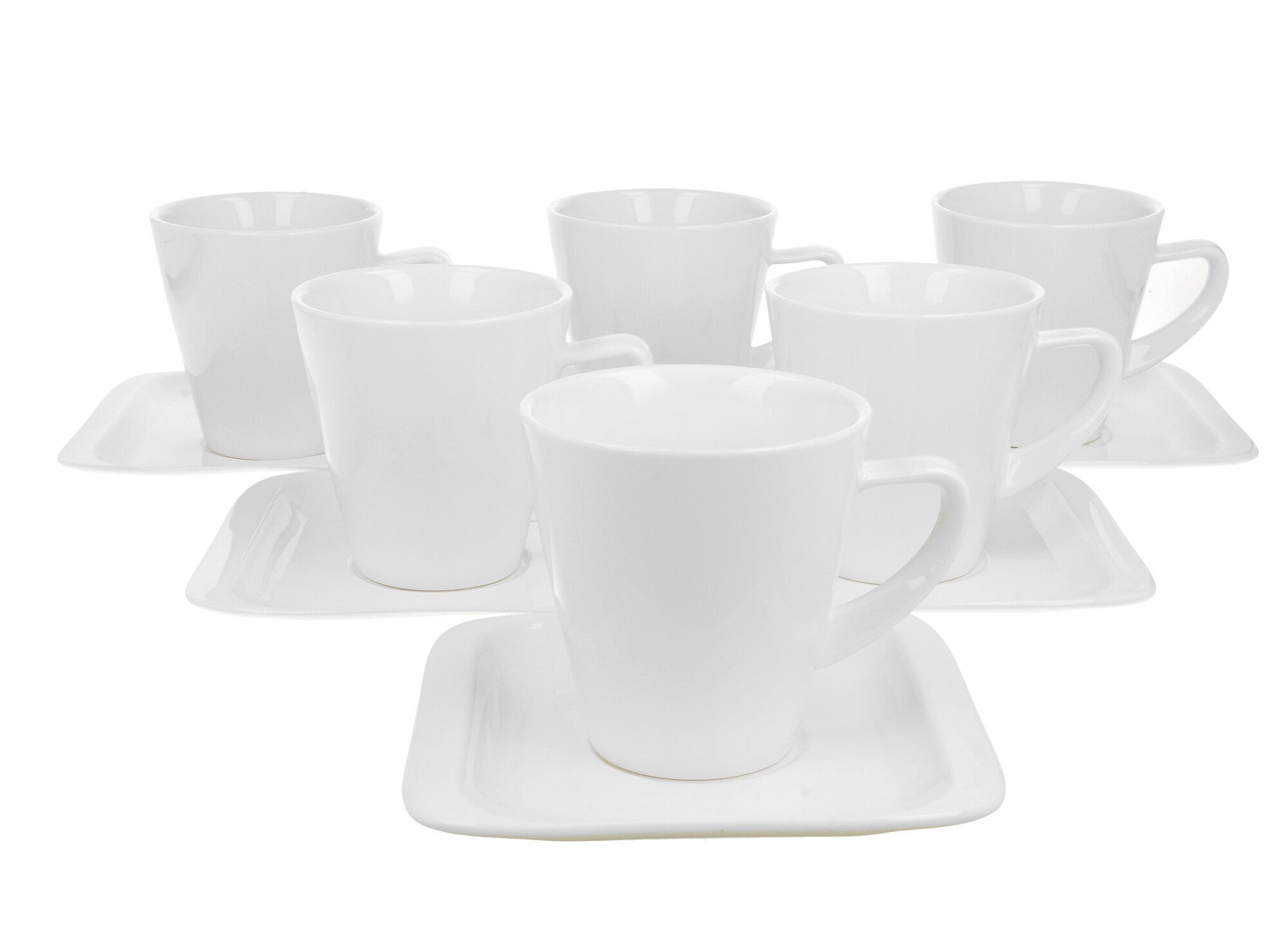 Komplet 6 filiżanek ze spodkami INFINITY wchodzący w skład kolekcji BIAŁEJ. Zastawa stołowa wykonana z wysokiej jakości wzmocnionej porcelany Durable w kolorze białym z delikatnym połyskiem, wyróżniająca się wyjątkową wytrzymałością.Klasyczny okrągły kształt filiżanek w połączeniu z kwadratowymi...