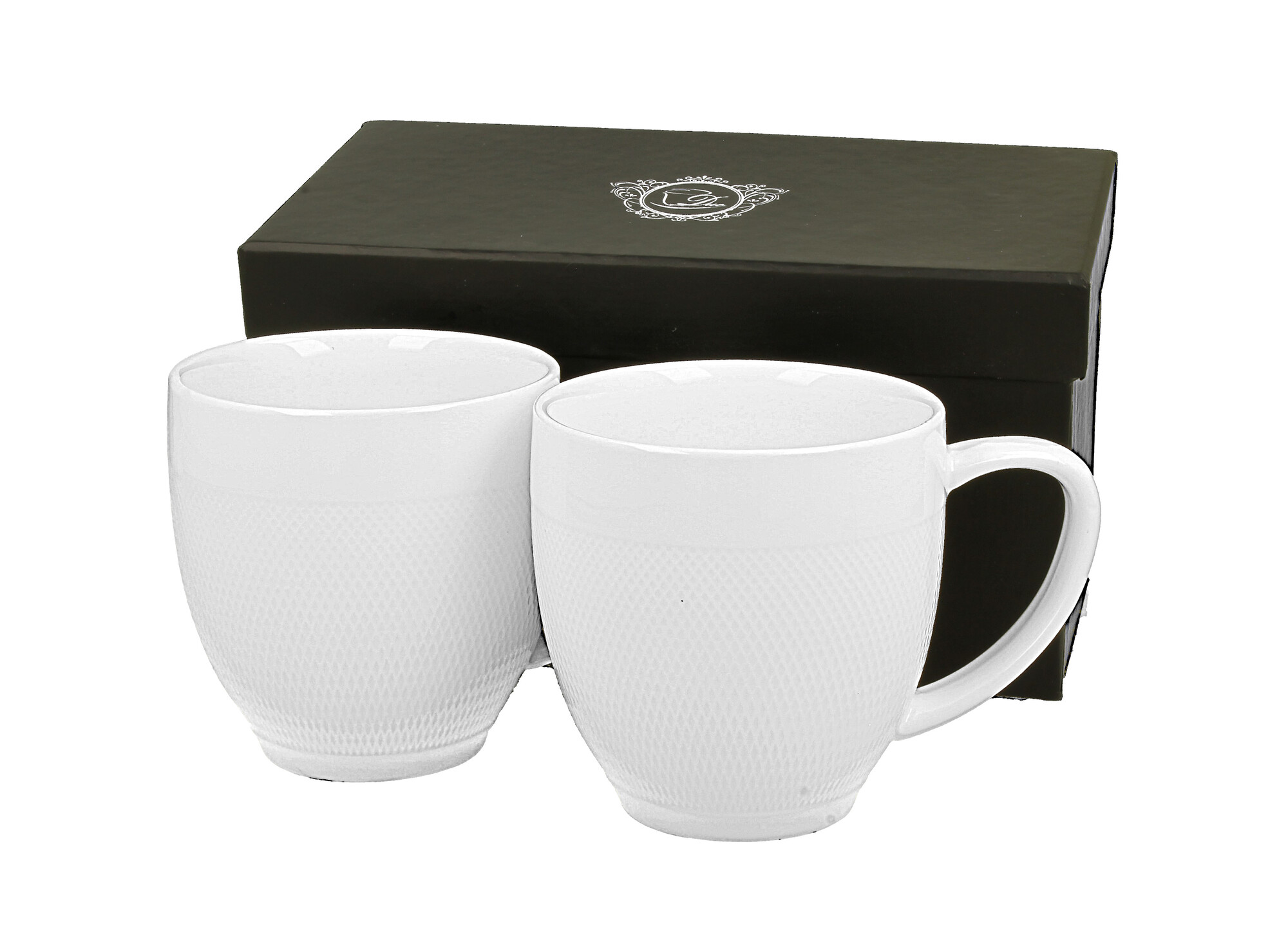Komplet 2 kubków DIAMOND wchodzący w skład kolekcji BIAŁEJ. Zastawa stołowa wykonana z wysokiej jakości wzmocnionej porcelany Durable w kolorze białym z delikatnym połyskiem, wyróżniająca się wyjątkową wytrzymałością.Klasyczny okrągły kształt, zdobiony eleganckimi tłoczeniami przypominającymi...