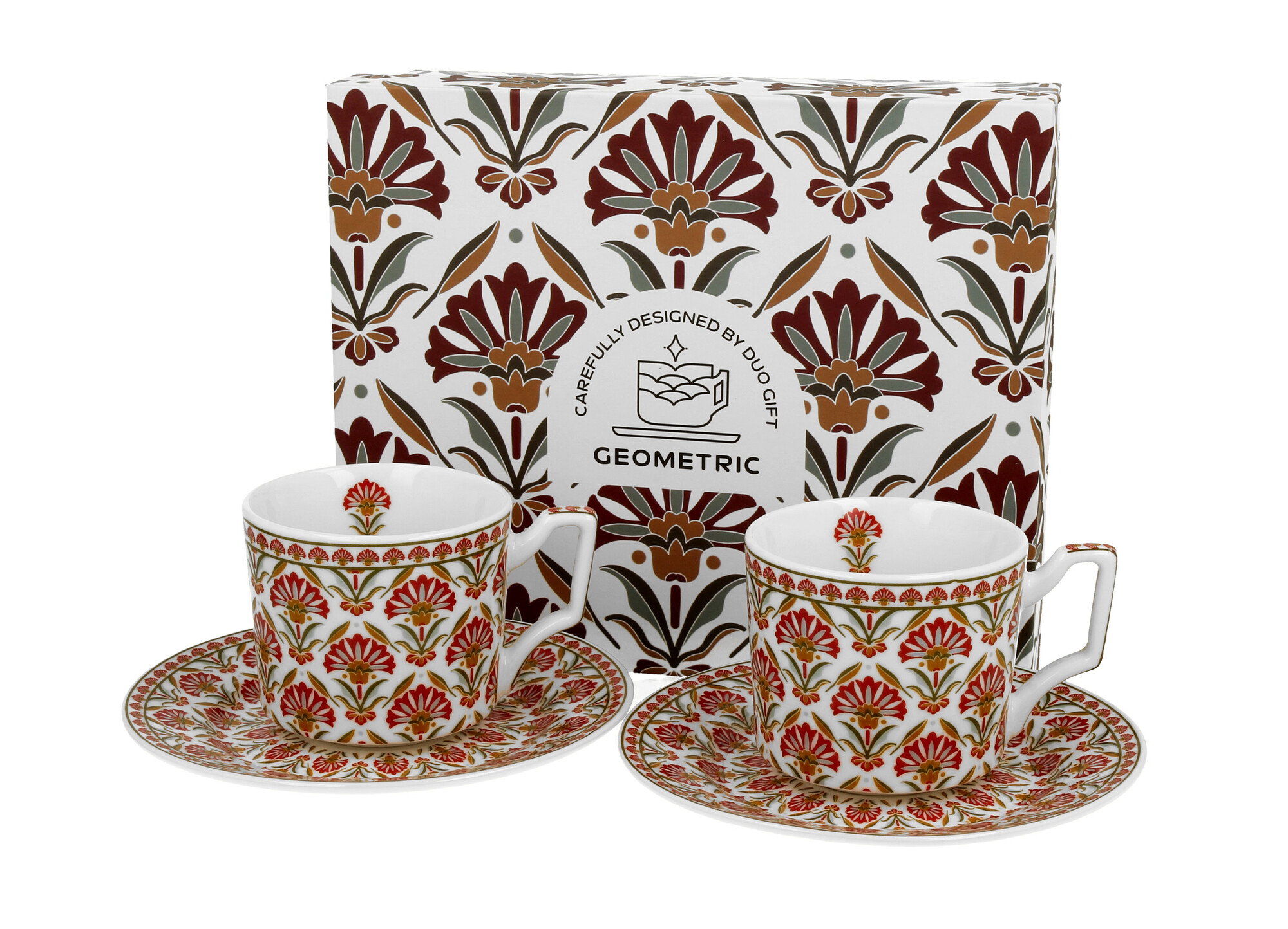 Komplet dwóch filiżanek espresso ze spodkami CANTARIO wchodząca w skład serii GEOMETRIC, wykonany z porcelany New Bone China, charakteryzującej się elegancką i naturalną kremowo - białą barwą z delikatnym połyskiem, a także wyjątkową wytrzymałością.Linia zdobiona motywem folkowych kwiatów...