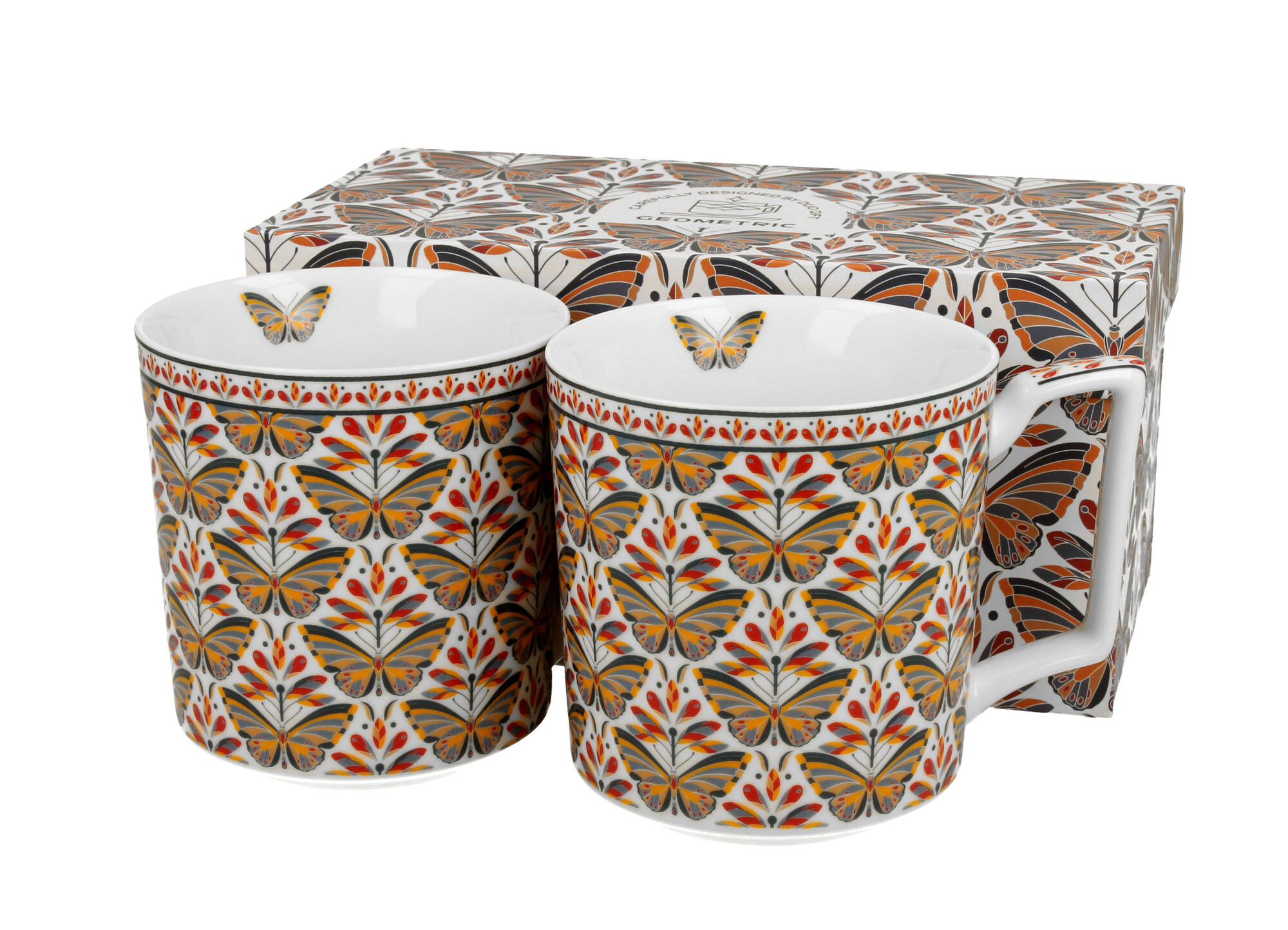 Komplet dwóch kubków PAPILIO wchodzący w skład serii GEOMETRIC, wykonany z porcelany New Bone China, która charakteryzuje się naturalnym kremowo-białym kolorem z delikatnym połyskiem oraz wyjątkową wytrzymałością i trwałością, zachowując lekkość i finezję. Linia zdobiona motywem mozaikowych...