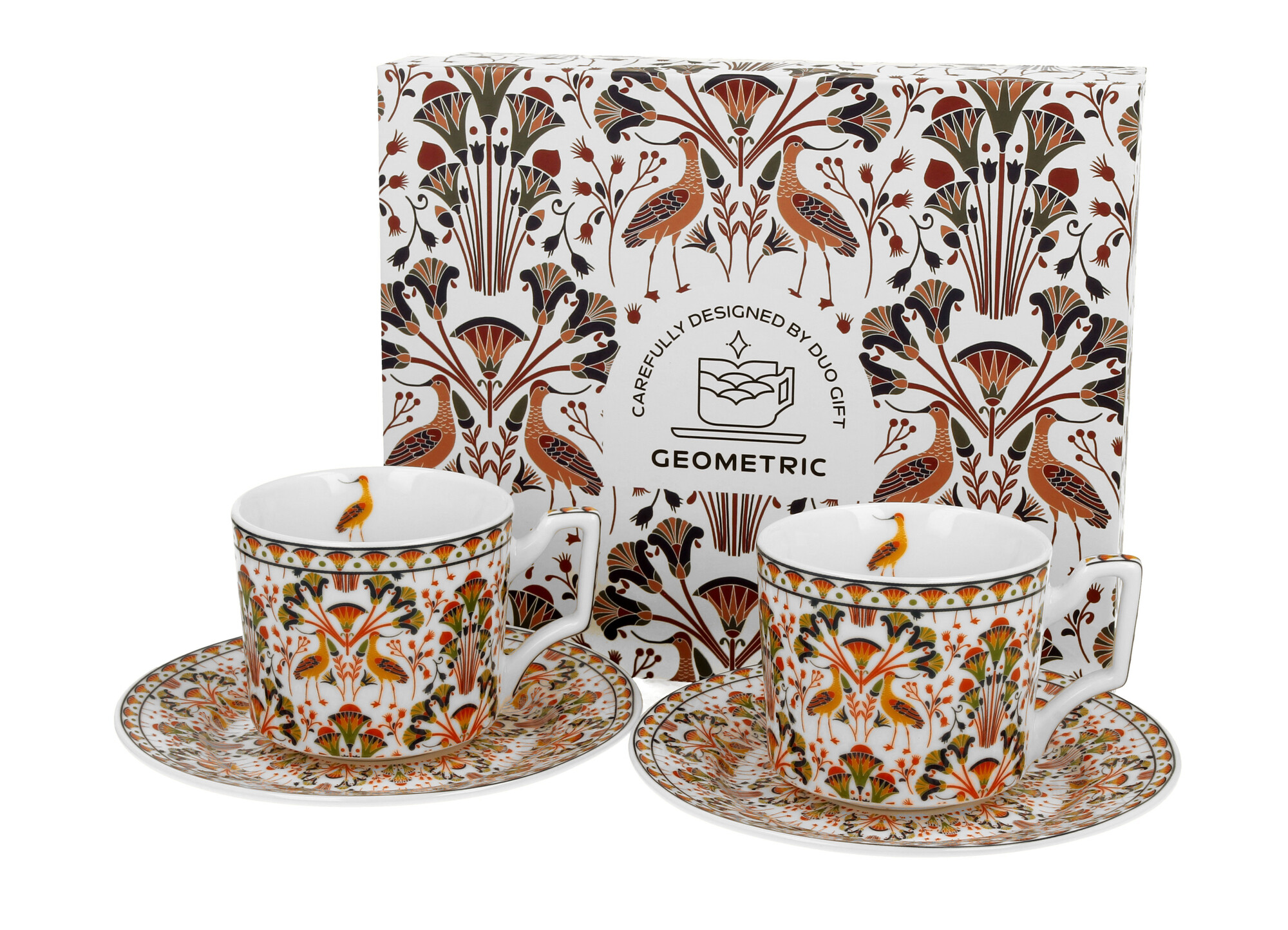 Komplet dwóch filiżanek espresso ze spodkami HERON wchodząca w skład serii GEOMETRIC, wykonany z porcelany New Bone China, charakteryzującej się elegancką i naturalną kremowo - białą barwą z delikatnym połyskiem, a także wyjątkową wytrzymałością.Linia zdobiona motywem mozaikowych heronów w...