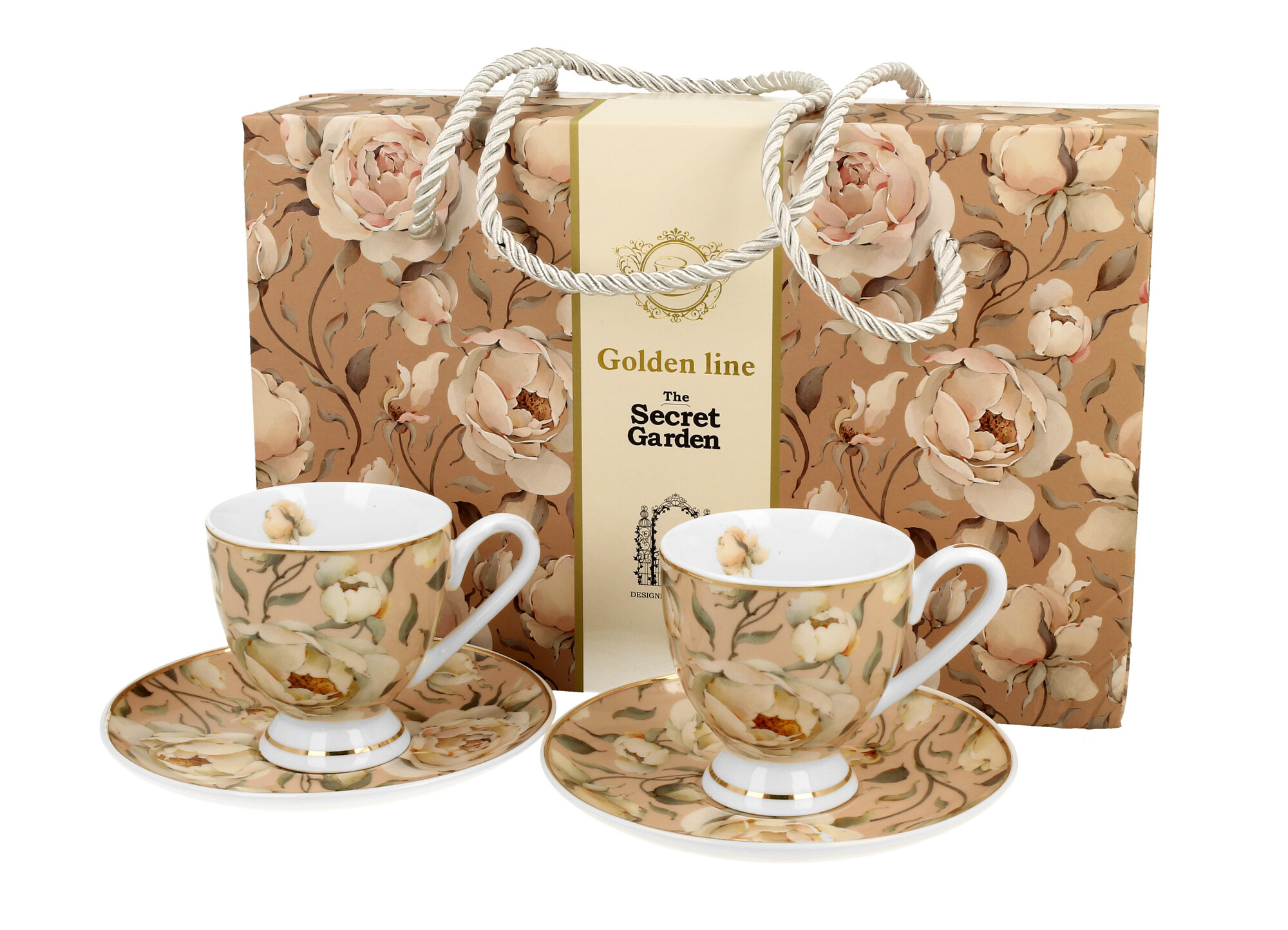 2 filiżanki espresso ze spodkami ENGLISH ROSES CREAM - Golden Line