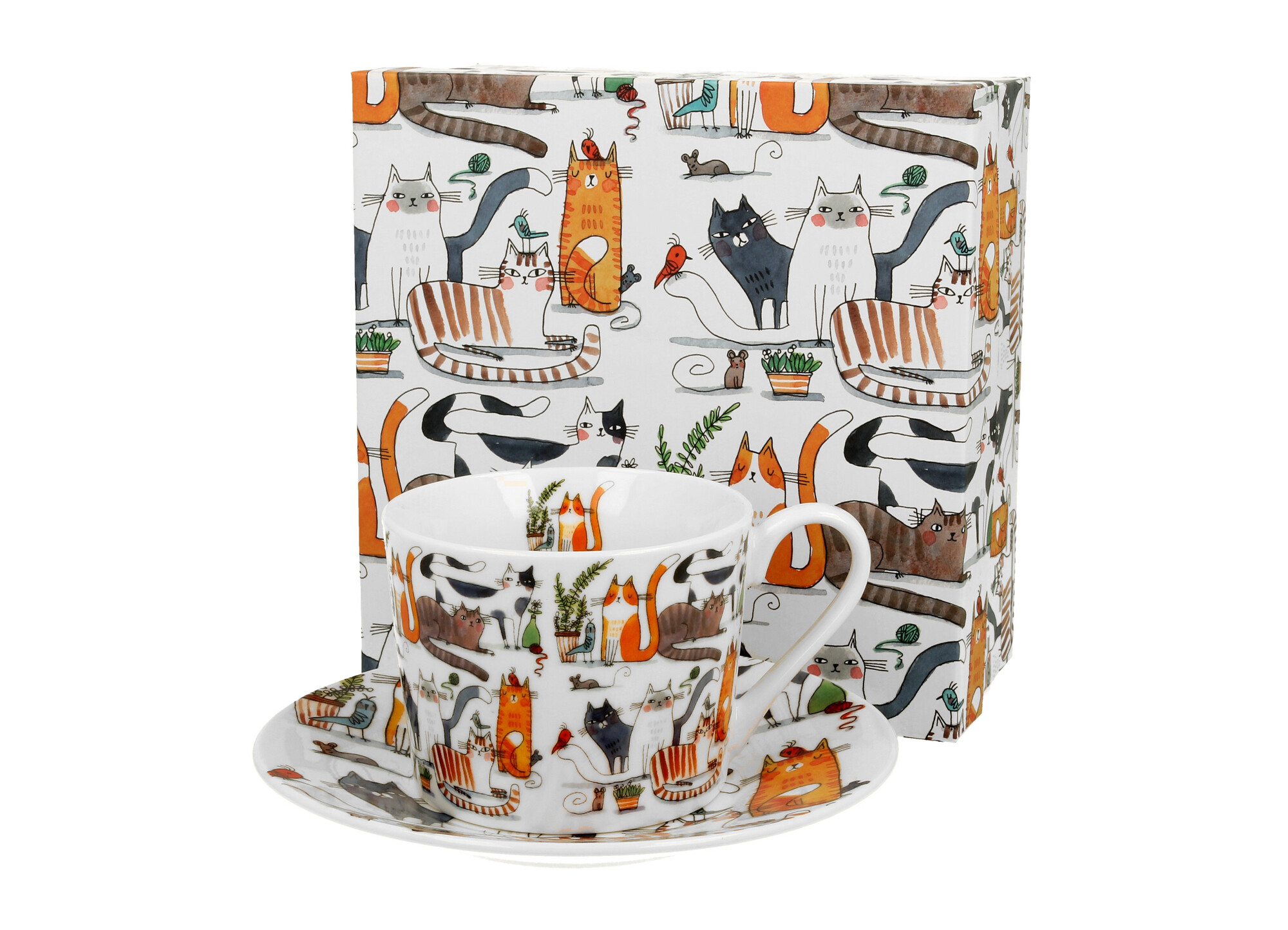 Filiżanka ze spodkiem elegant Koci Świat LENIWE KOTY