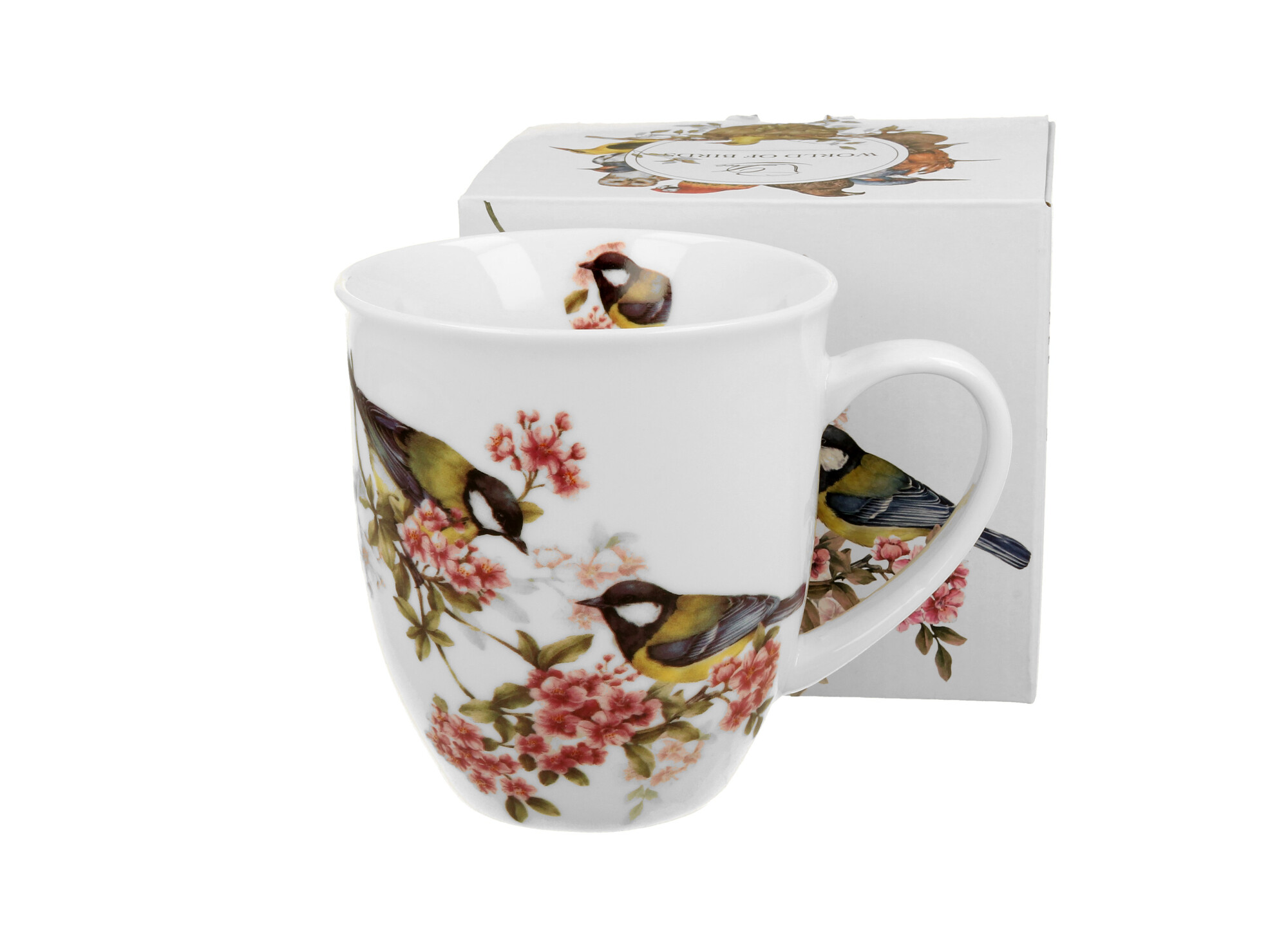 Kubek 400 ml Ptasi Świat SIKORKI wchodzący w skład serii Animals, wykonany z porcelany New Bone China, charakteryzującej się naturalnym kremowo-białym kolorem z delikatnym połyskiem oraz wyjątkową wytrzymałością i trwałością, zachowując lekkość i finezję. Kubek zdobiony motywem sikorki wśród...